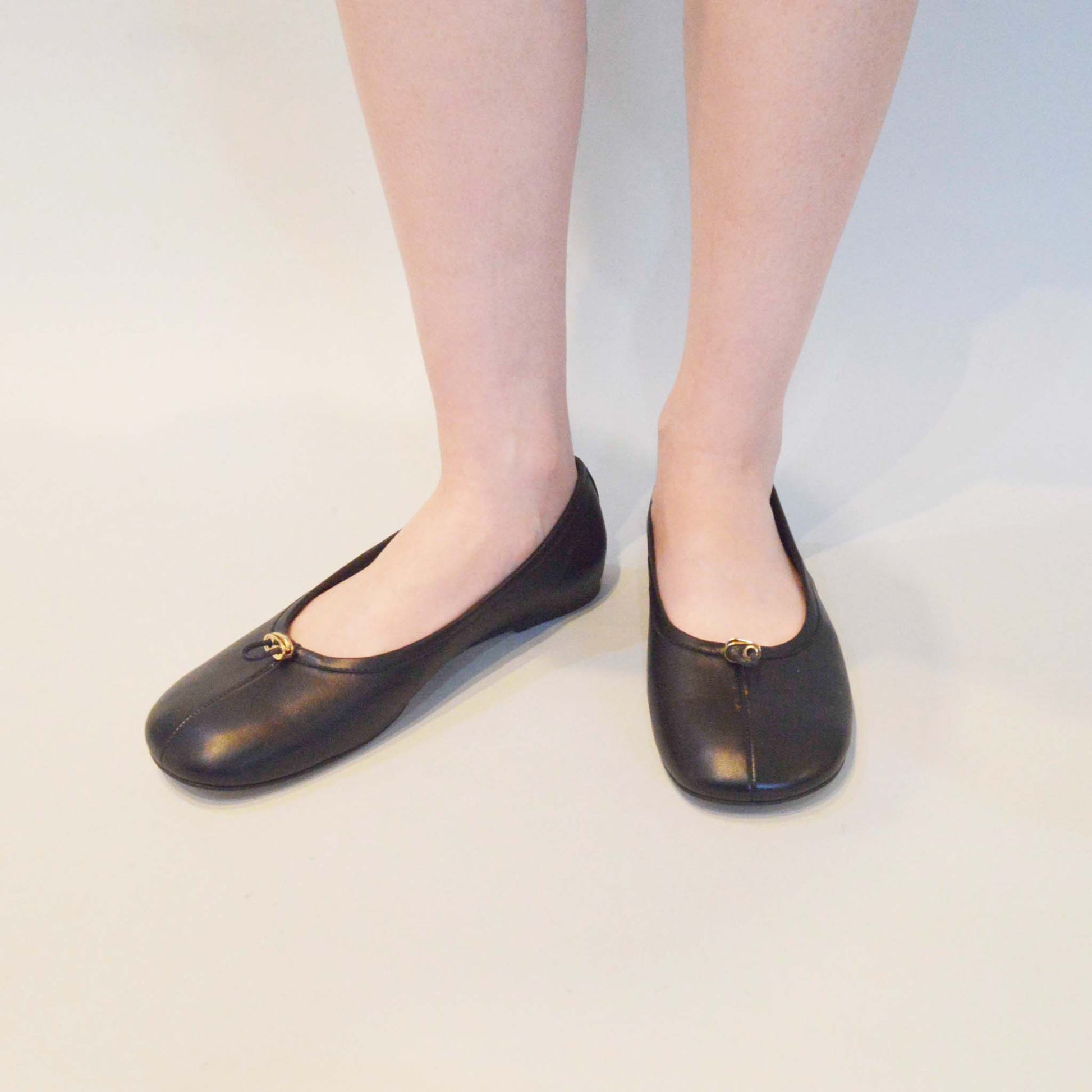 フランスのラムレザーを使用しています。バレーシューズを着想源に、丸みがあり薄くした足先のシルエットが特徴です。